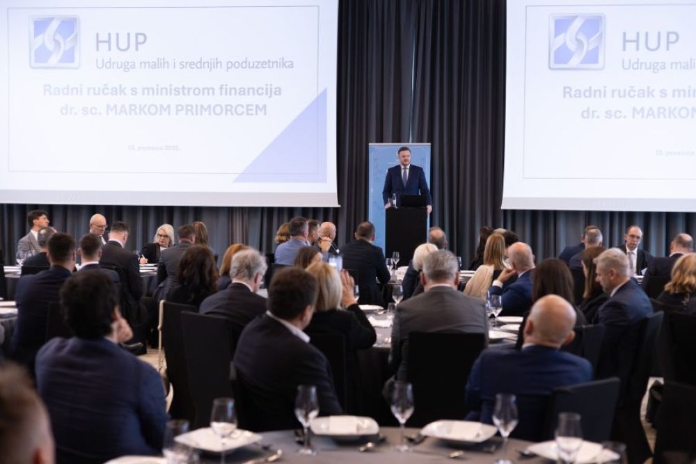 U organizaciji HUP-Udruge malih i srednjih poduzetnika održan je tradicionalni Radni ručak, kojem je drugi put prisustvovao potpredsjednik Vlade i ministar financija dr. sc. Marko Primorac, te gotovo 160 poduzetnika.