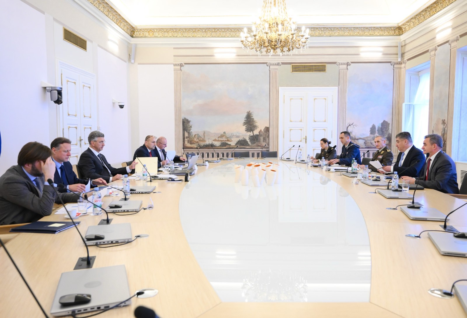 U srijedu, 1. travnja 2026. godine u Banskim dvorima održane su sjednice Vijeća za nacionalnu sigurnost i Vijeća za obranu, koje su zajednički sazvali predsjednik Republike i vrhovni zapovjednik Oružanih snaga Zoran Milanović te predsjednik Vlade Andrej Plenković.