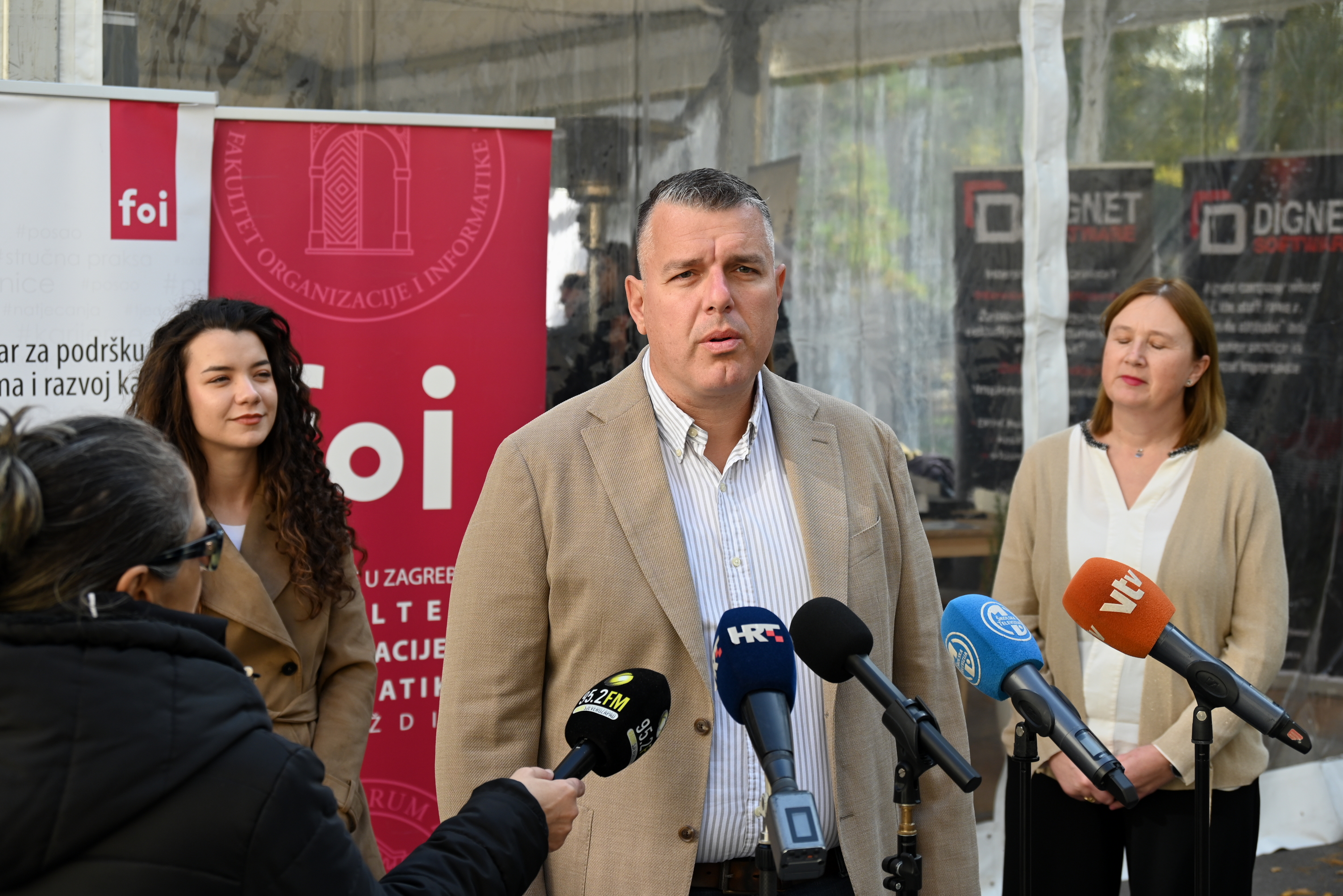Na Fakultetu organizacije i informatike (FOI) danas je svečano otvoren 14. Tjedan karijera, najveći regionalni događaj koji povezuje studente, poslodavce i alumnije FOI-ja. Ovogodišnje izdanje, koje se održava od 20. do 24. listopada, donosi niz dinamičnih aktivnosti posvećenih umjetnoj inteligenciji, budućim karijerama, generičkim vještinama i kibernetičkoj sigurnosti. Otvorenje je započelo tradicionalnim Karijernim špancirom, druženjem i umrežavanjem studenata i poslodavaca u dvorištu FOI-ja, nakon čega je uslijedio panel „AI i junior – tko dobiva prvi posao?“. O ulozi umjetne inteligencije u zapošljavanju mladih raspravljali su Vedran Bajer (Wonderful), Maja Benkus (Span) i Frano Borozan (Unit Croatia, SysKit), uz moderaciju studentice FOI-ja Larije Jukić.