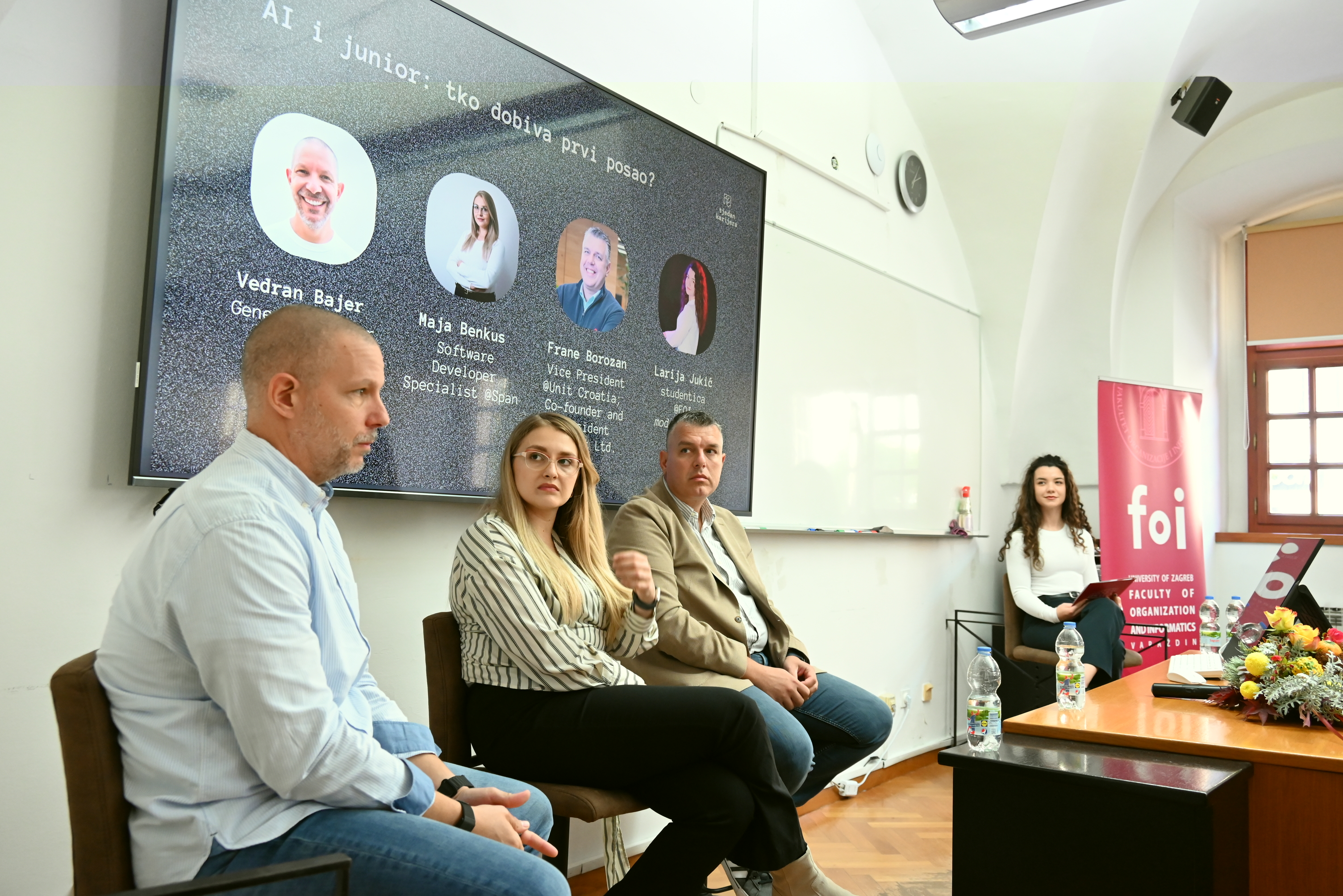 Govoreći o utjecaju umjetne inteligencije na zapošljavanje, Frane Borozan iz udruge Unit Croatia i tvrtke SysKit poručio je kako se AI ne treba promatrati kao prijetnja. „Umjetna inteligencija nije nešto čega se trebamo bojati – ona otvara nove mogućnosti. FOI vidim kao mjesto koje studentima pomaže naučiti kako pametno koristiti AI alate, jer upravo će ta znanja poslodavci prepoznati kod mladih kandidata“ - rekao je Borozan.
