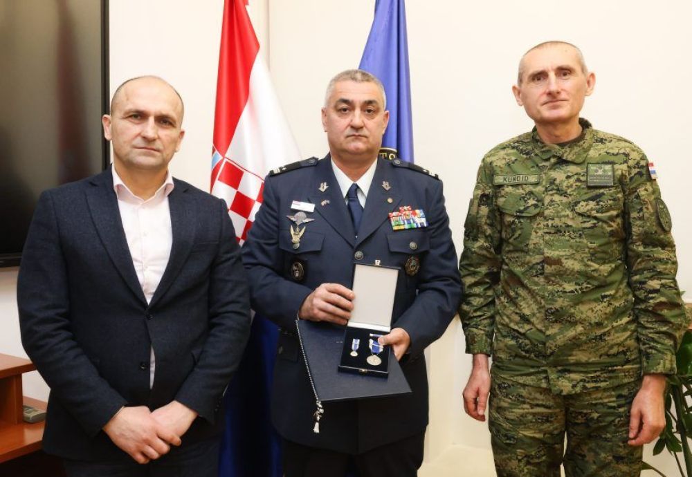 Potpredsjednik Vlade Republike Hrvatske i ministar obrane Ivan Anušić i načelnik Glavnog stožera Oružanih snaga RH general-pukovnik Tihomir Kundid u ponedjeljak, 16. veljače 2026., u Ministarstvu obrane primili su pukovnika Zlatka Sudića odlikovanog NATO-ovom medaljom za zasluge na razini glavnog tajnika NATO-a.