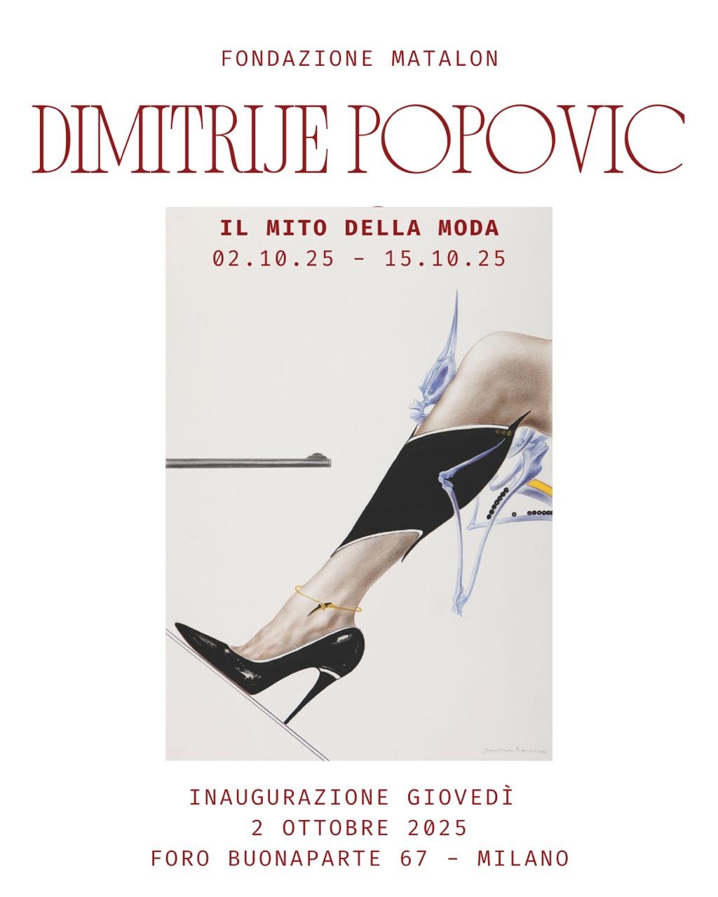 U milanskoj Fondaciji Luciana Matalon od 2. do 15. listopada bit će otvorena izložba Mit mode, peta samostalna izložba crnogorsko-hrvatskog umjetnika Dimitrija Popovića u ovom gradu. Do sada je u Italiji predstavio sedamnaest samostalnih postava u gradovima poput Barija, Rima, Spoleta, Ravene, Padove i Trsta, a za svoj rad primio je niz značajnih priznanja i nagrada.