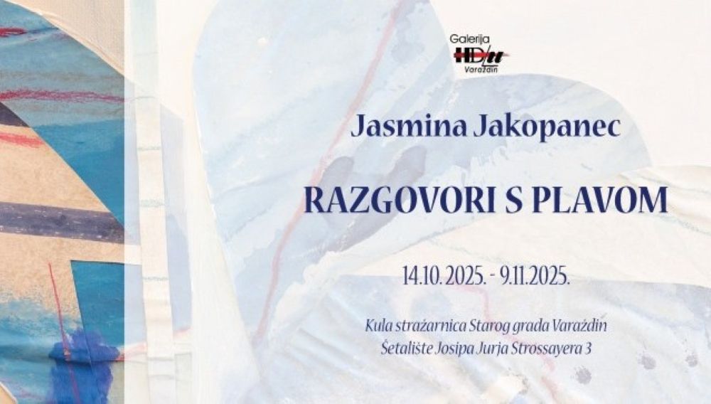 Galerija HDLU Varaždin najavljuje otvorenje samostalne izložbe Jasmine Jakopanec pod nazivom “Razgovori s plavom”, koje će se održati u utorak, 14. listopada 2025. godine u 19 sati.