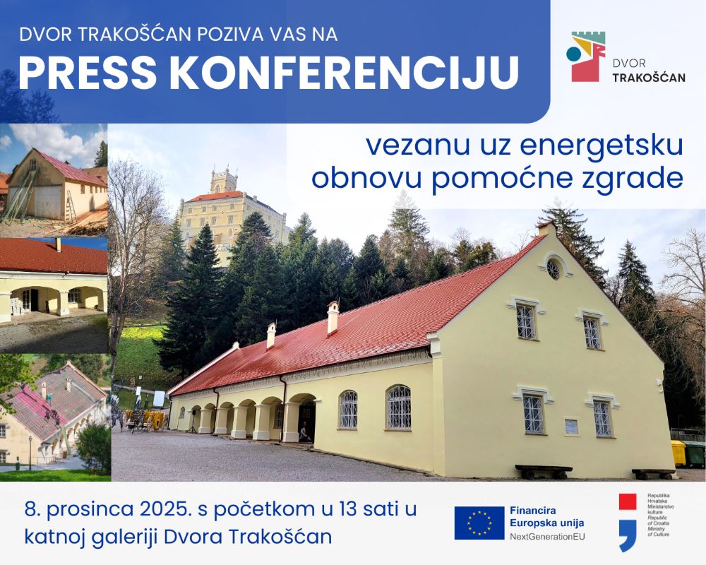 Završio je projekt energetske obnove pomoćne zgrade Dvora Trakošćan, realizirane u sklopu projekta prijavljenog na EU Poziv br. NPOO.C6.1.R1-I1.01. – Energetska obnova zgrada sa statusom kulturnog dobra, te će se završna press konferencija održati 8. prosinca s početkom u 13 sati u katnoj galeriji Dvora Trakošćan.