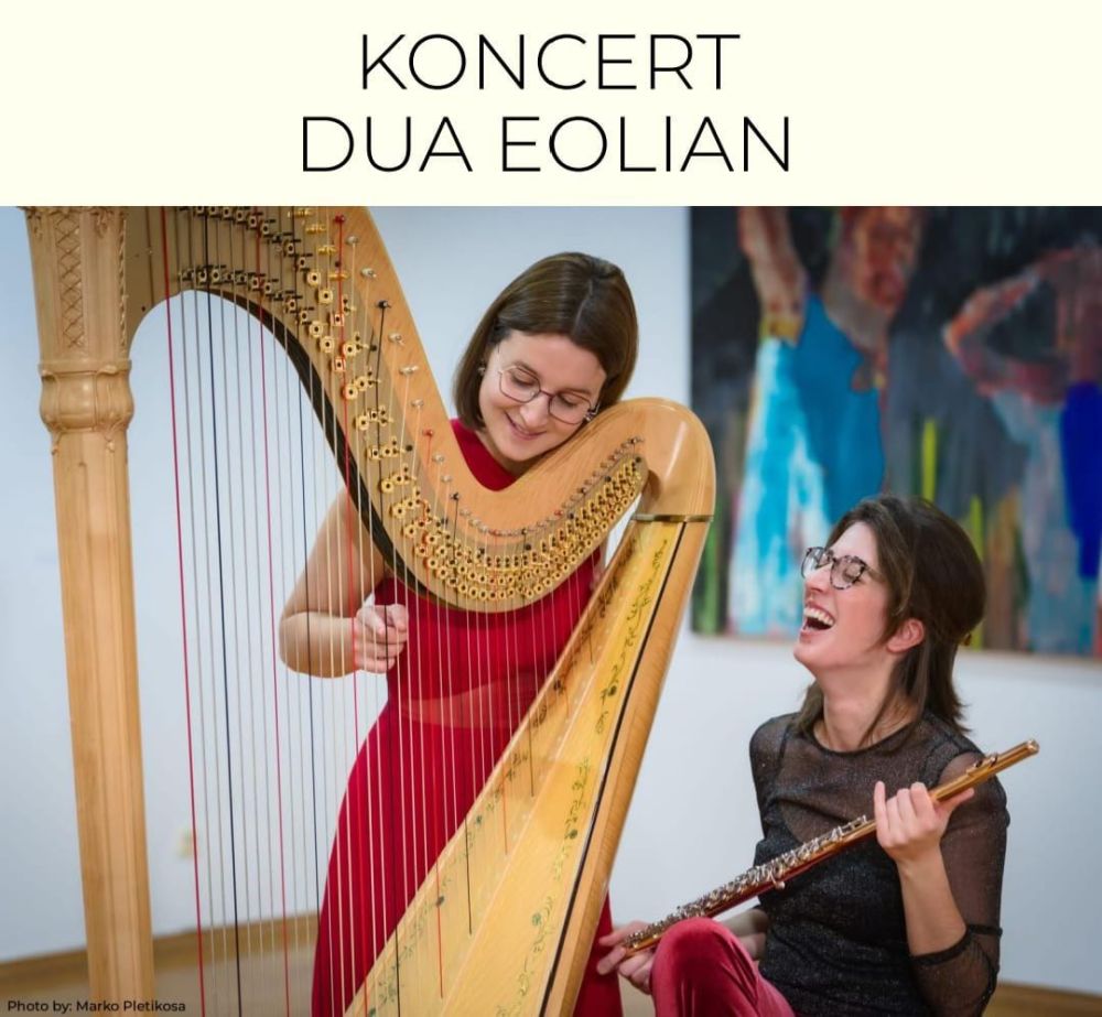 Koncert klasične glazbe dua Eolian, kojeg čine Lucija Stilinović (flauta) i Veronika Ćiković (harfa) održat će se u subotu, 22. studenoga u 11 sati u izložbenom salonu Galerije Kovačić Macolić (Ulica Ljudevita Gaja 13, Varaždin), na posljednji dan izložbe „Jadranka Fatur – Zaustavljeni trenuci“. U ovom posebnom susretu glazbe i likovnih umjetnosti očekuje vas pomno osmišljen program koji spaja nježnost, virtuoznost i raznolikost različitih stilskih razdoblja.