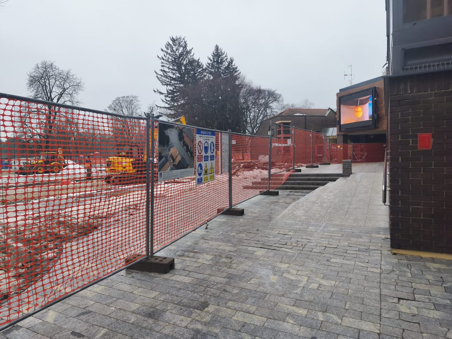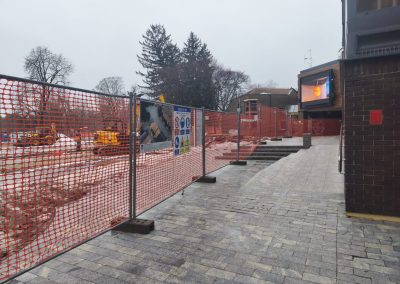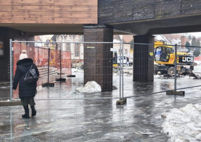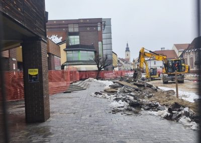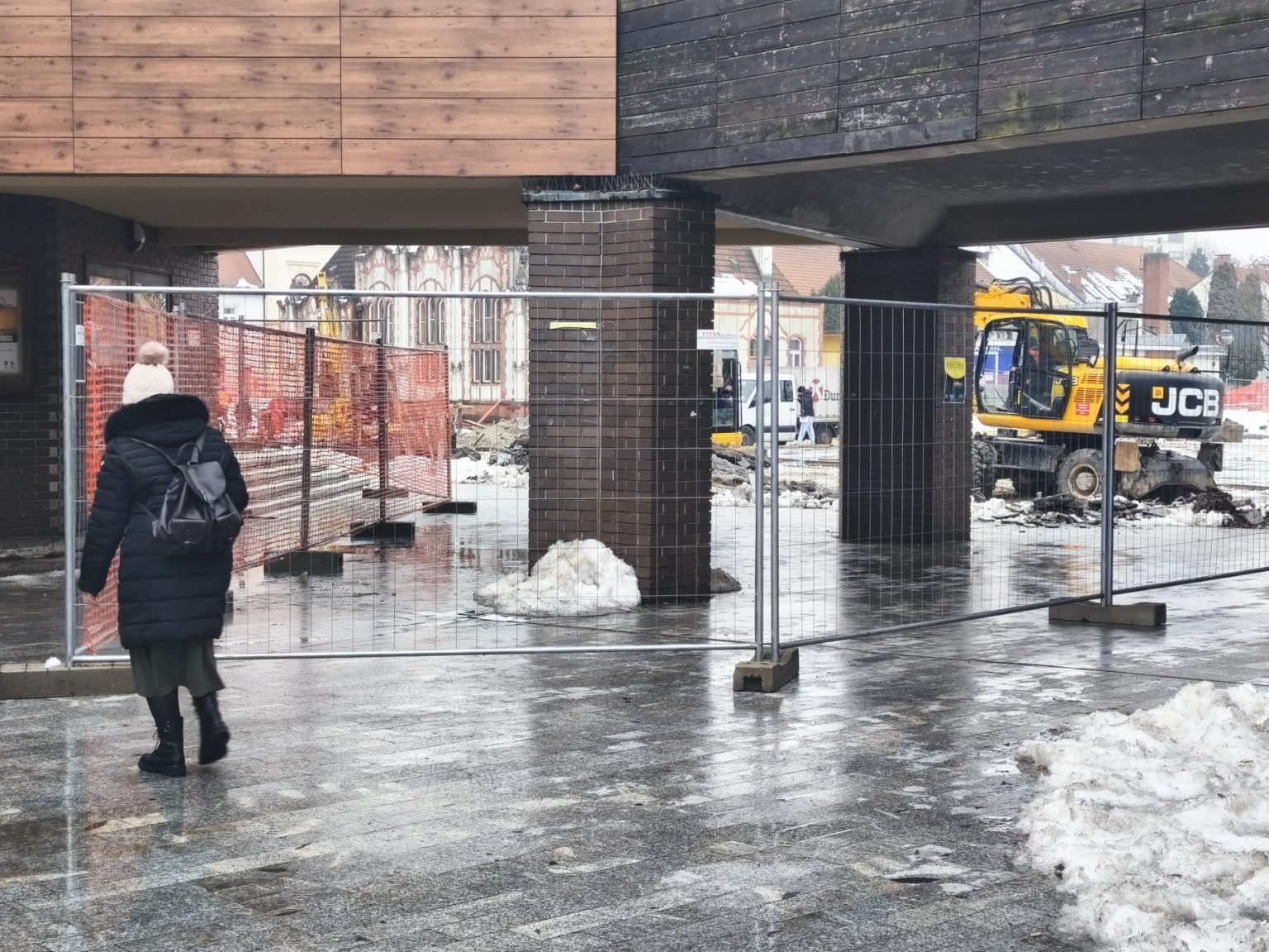 Izvođač radova je danas, 26. siječnja, pomaknuo gradilišnu ogradu na prednji dio središnjeg stubišta Centra za kulturu Čakovec. Pristup je i dalje  omogućen preko bočnih ulaznih koridora – pješačke i rampe za invalidska kolica prema Robnoj kući „Međimurka“ te bočnog stubišta prema Knjižnici „Nikola Zrinski“. U tjednu od 26. do 30. siječnja (ovisno o vremenskim uvjetima) planirani su radovi na platou ispred glavnog ulaza u Knjižnicu „Nikola Zrinski“.