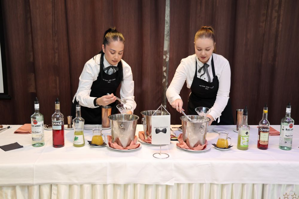 U disciplini sinkroniziranog posluživanja koktela, kojom se ocjenjuje timski rad, kreativnost i izvedba, najuspješniji su bili učenici Srednje strukovne škole bana Josipa Jelačića iz Sinja.